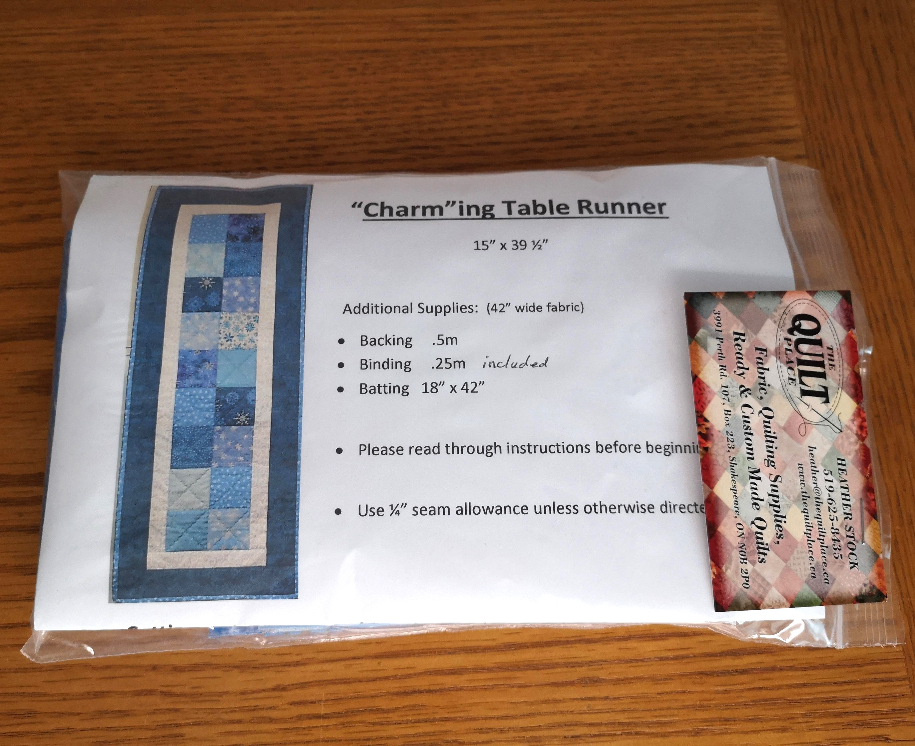 Item Detail: "Charm"ing Table Runner Kit 15"x39.5" includes binding.