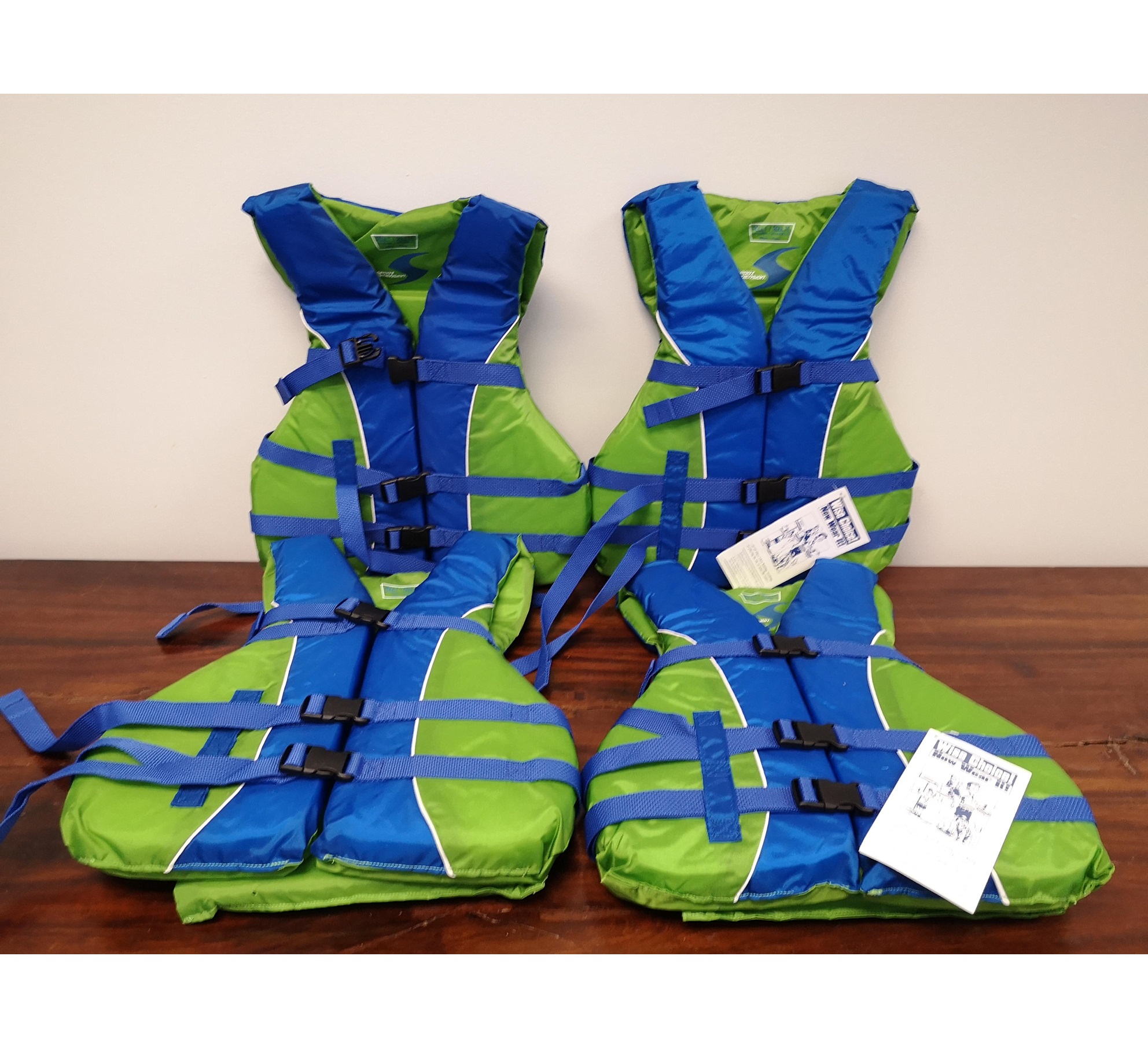 Item Detail: Sport Dimensions Adult Life Jackets 4 Pack. Adult universal fit for over 90lbs. Comes with carry bag.