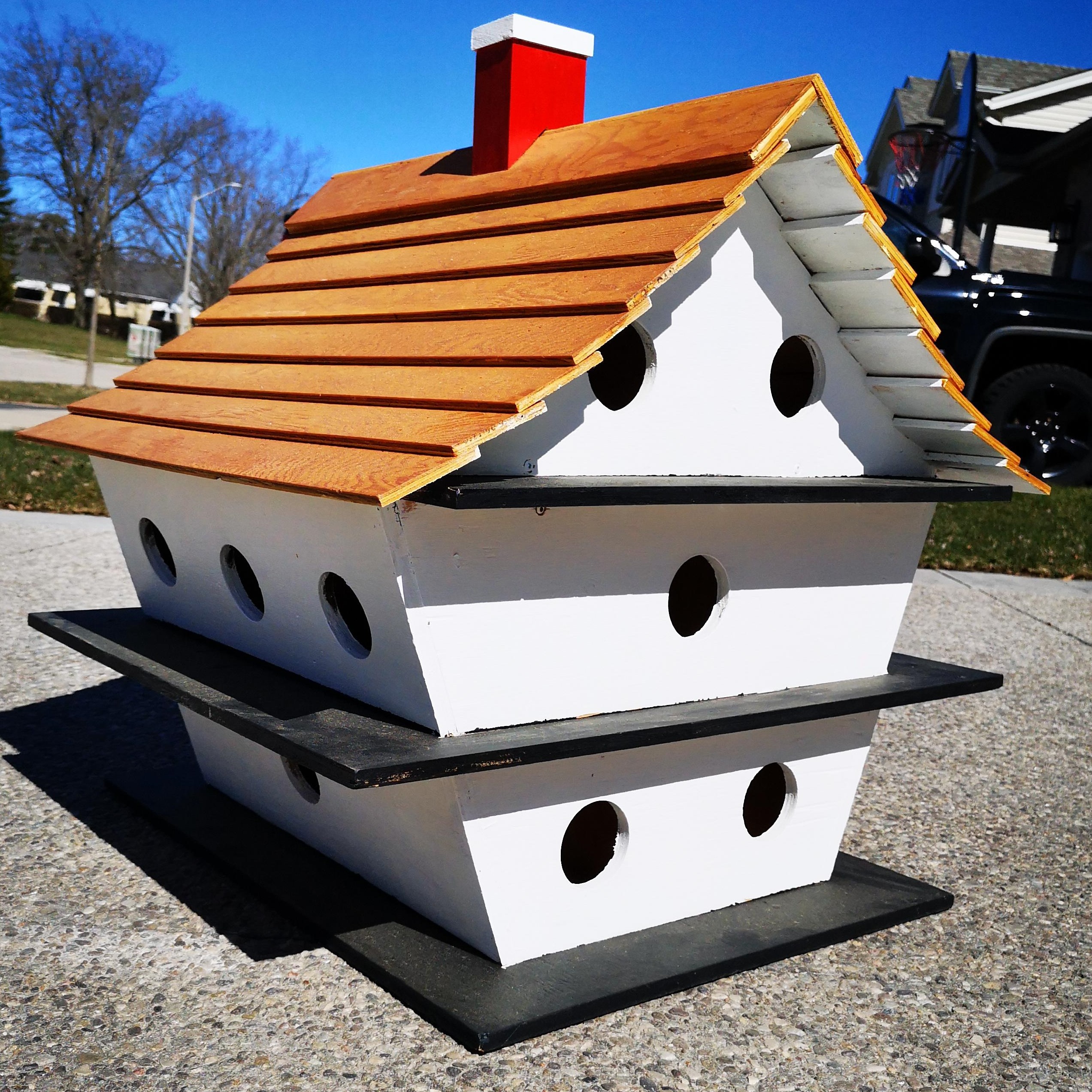 Item Detail: Large 24"x24"x24" Purple Martin Birdhouse with 16 seperate nests. Built to last using outdoor plywood & cedar. Comes with 4 cedar supports to accommodate various mounting options.