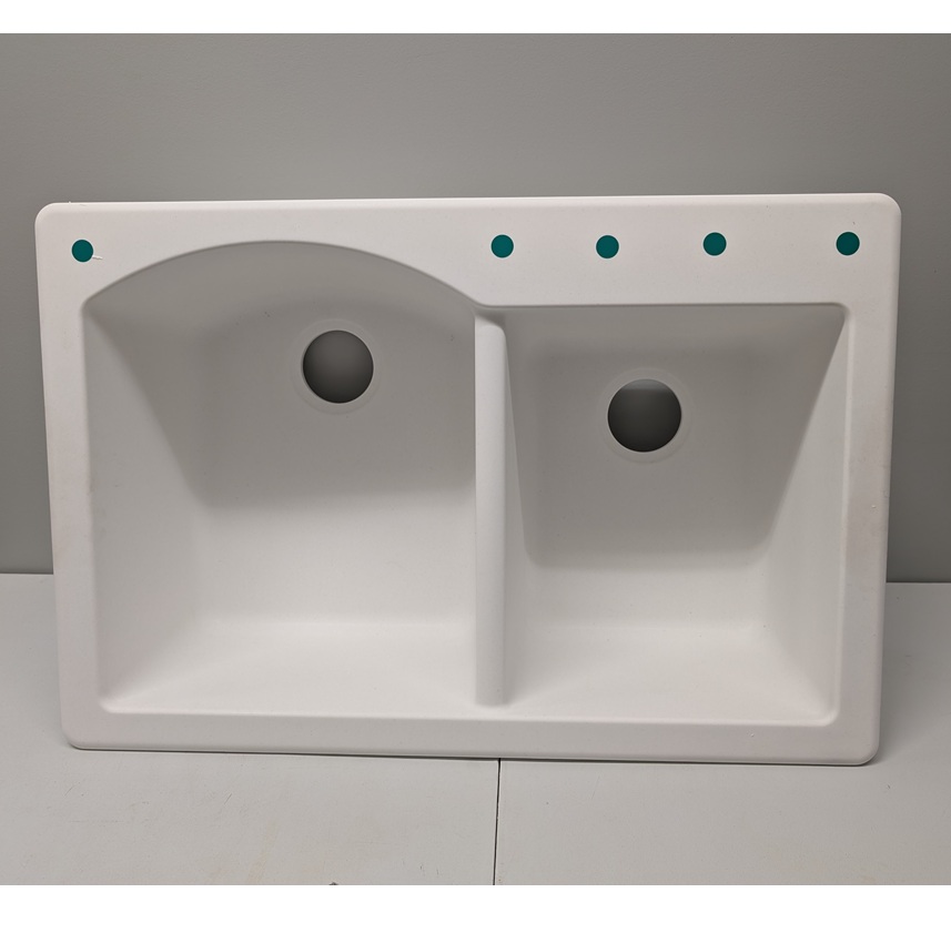 Item Detail: Granitek natural granite effect kitchen sink in white. Two bowl design overall 33" x 22" with mounting hardware. Essential function, style, elegance and sophistication are the key words to describe the world of Elleci sinks.