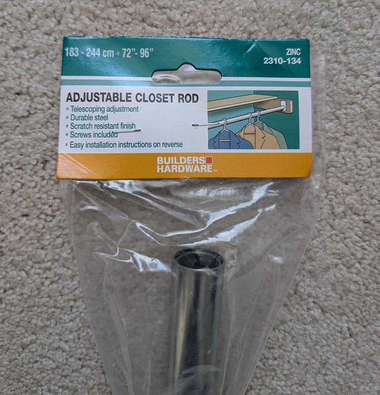 Item Detail: Qty 5 x Adjustable Closet Rods. Telescoping adjustment 72" to 96", Durable steel with scratch resistant finish, includes screws.