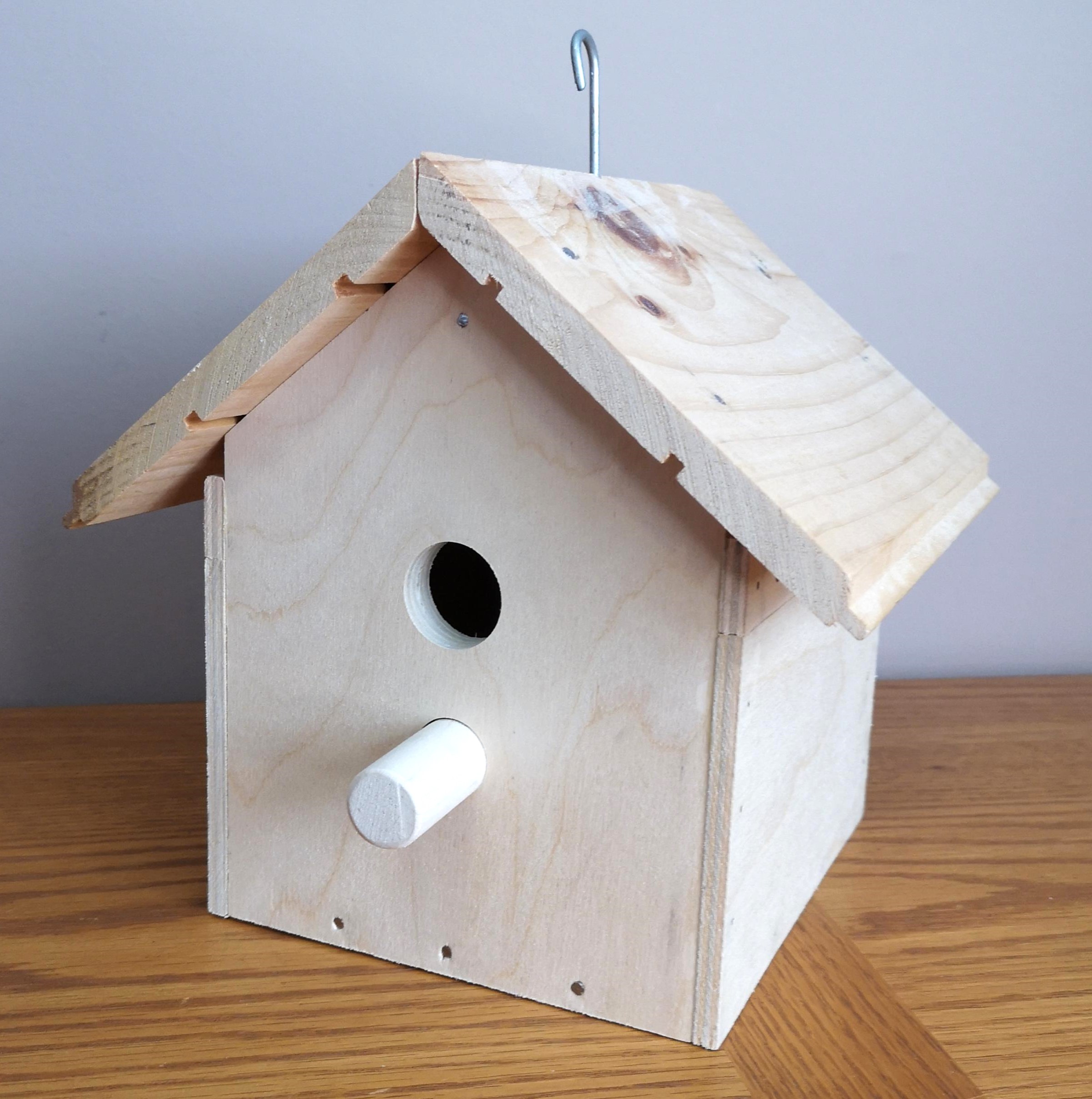 Item Detail: Jenny Wren Hanging Bird House in Pine 7.5" high x 8" wide x 7.5" deep.