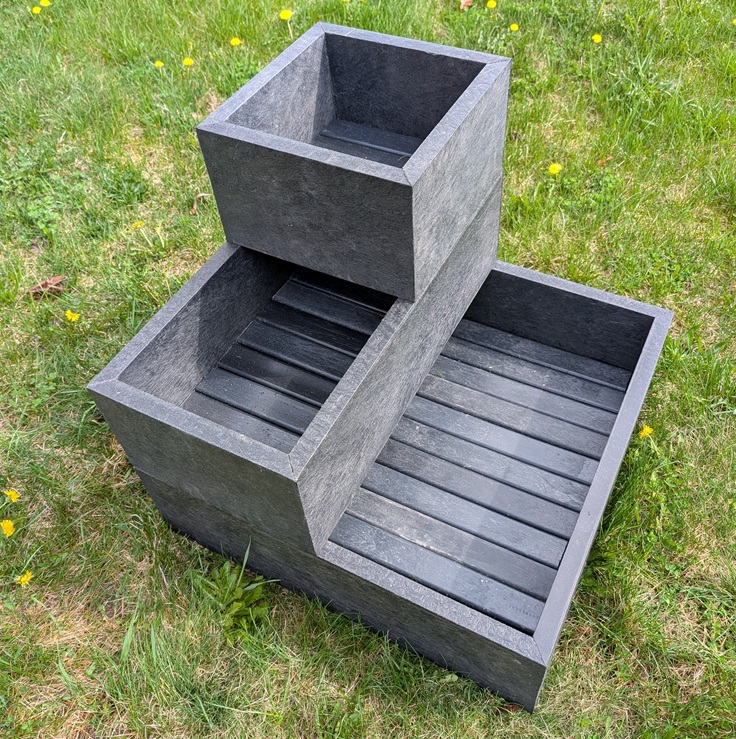 Item Detail: Made from recycled plastics these modular planter boxes are attractive, versatile and reduce landfill waste! Set includes a 2' x 2', 1' x 2' and 1' x 1' boxes which can be arranged in any combination you wish. Slatted floor for water drainage.