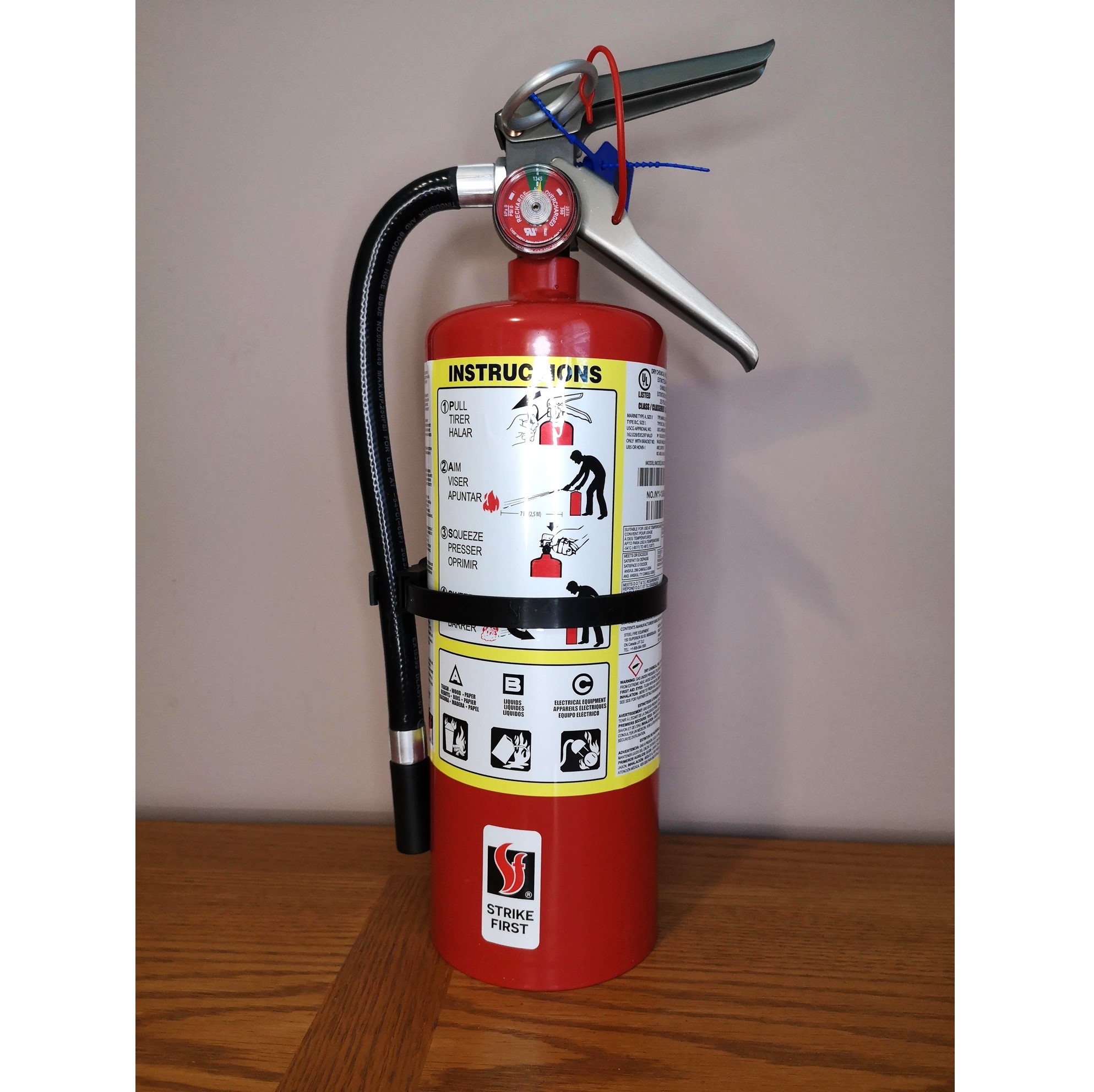 Item Detail: Strike First Model SF-ABC310 is a 5lb Multi-Purpose ABC Dry Chemical Portable Fire Extinguisher. Built tough and easy to service. Wall Hook Included - Ideal for Home, Cottage, Trailer, Basement and Anywhere Else.