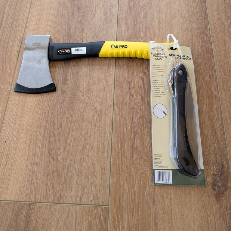 Item Detail: Great for camping and backyard fire! Can-Pro 1.5lb Hatchet, 14" long with durable fiberglass handle and 7" folding camp saw.