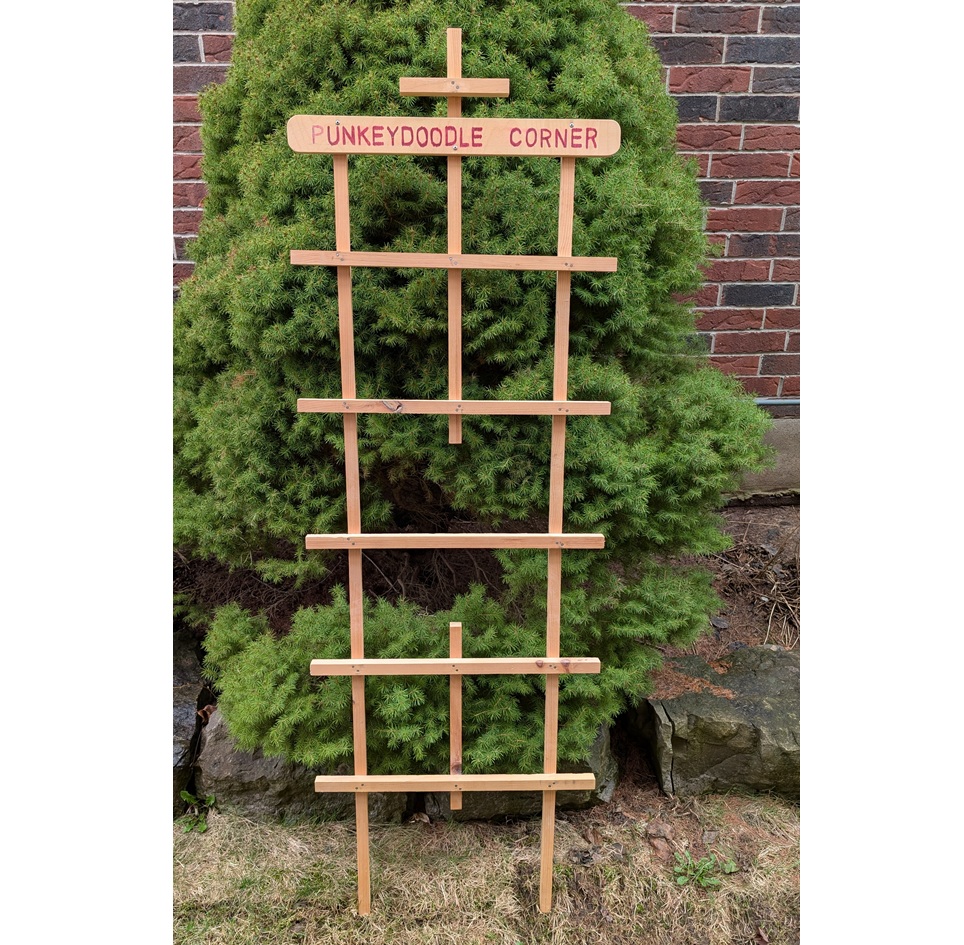 Item Detail: Decorative pine Punkeydoodle Corner Trellis for use indoors or out. Measures 22" wide x 66" tall .