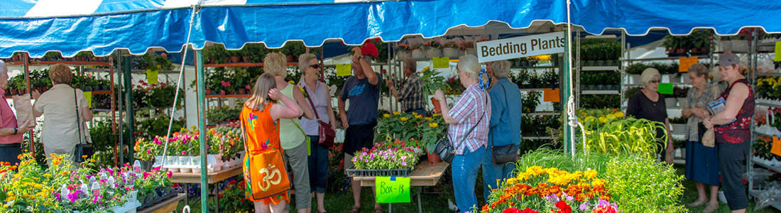You can drop plants off Friday afternoon and evening at the tent. On Saturday morning, at the entrance into the Fairgrounds, there is a drop-off tent. The crew there will bring the plants to our tent.