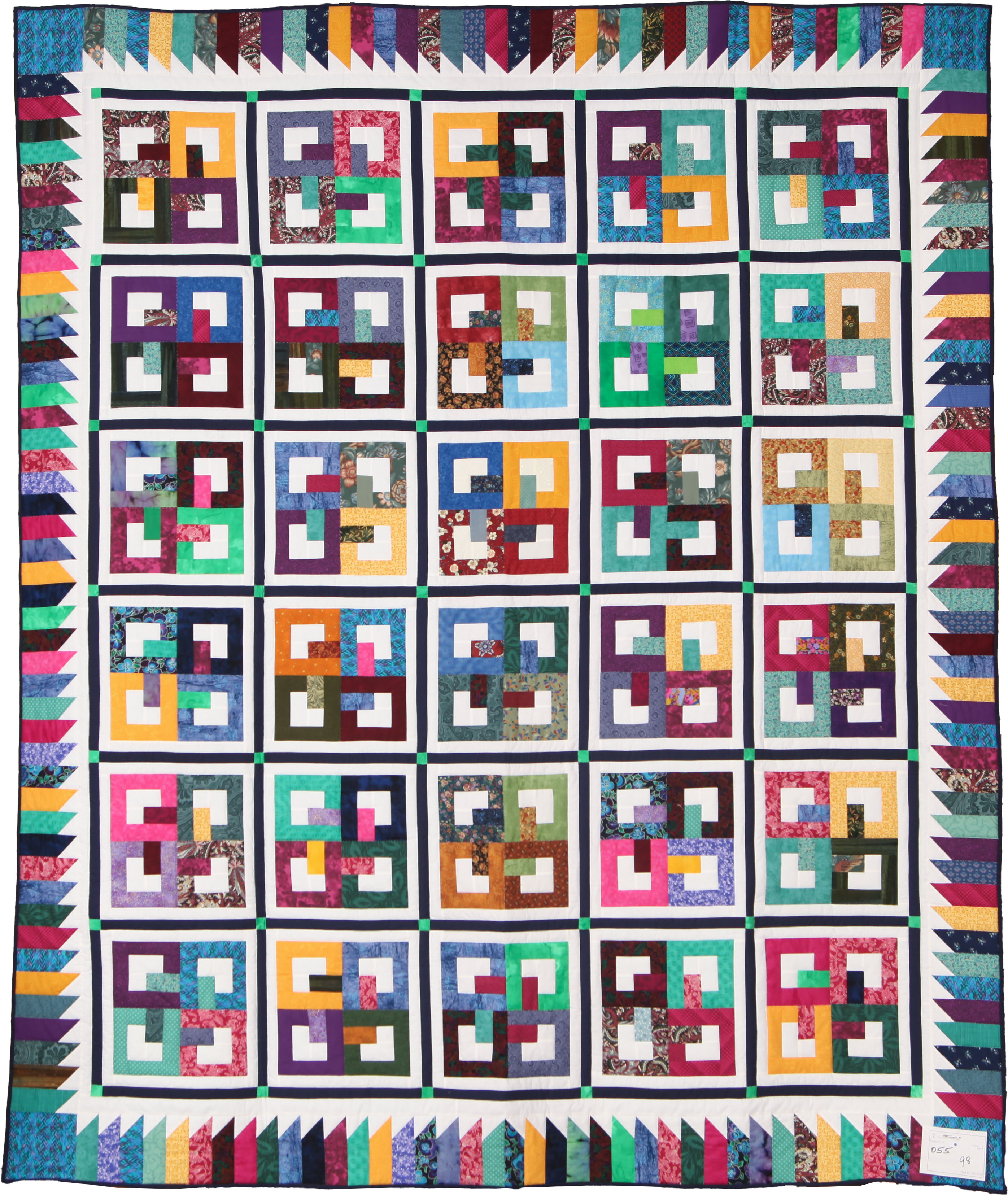 Each of the 10 quilters made the blocks for this top in colourful jewel tones.