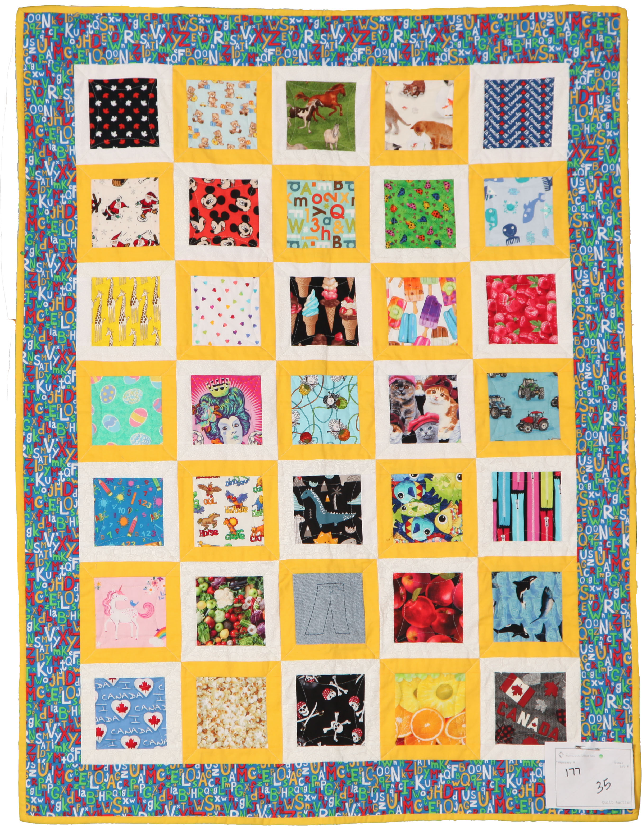 We created this quilt in order to promote literacy and numeracy in young children. Each letter of the alphabet is represented in this quilt.