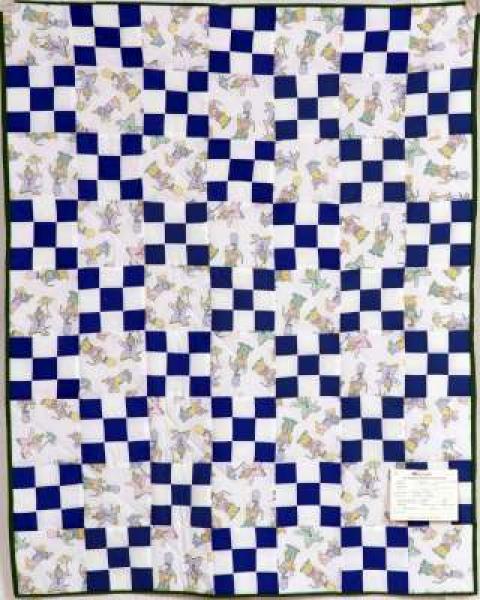 Catalogue Number: 078Sale Year: 2011Item Type: Crib QuiltColours: bluewhiteDonor(s): Betty King, RodneyQuilter(s): Betty King, RodneyMachine Quilted: yesDimensions: 39 x 48Description: Pieced
