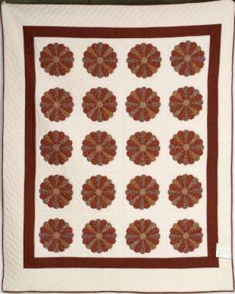 Catalogue Number: 108Sale Year: 2011Item Type: Bed QuiltColours: browncreamDonor(s): Elmira Montrose Markham MennoniteQuilter(s): Elmira Montrose Markham MennoniteMachine Quilted: noDimensions: 74 x 88Description: Applq&pcd Late Cleta Martin