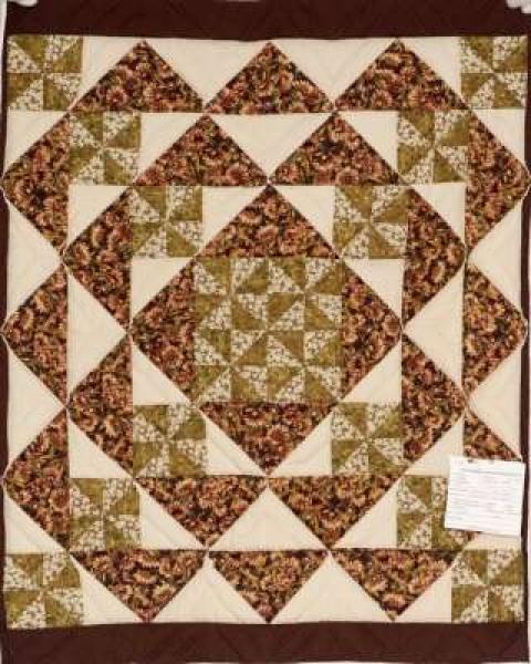 Catalogue Number: 133Sale Year: 2011Item Type: Wall HangingColours: browncreamgreenDonor(s): Fair Haven Markham MennoniteQuilter(s): Fair Haven Markham MennoniteMachine Quilted: noDimensions: 39 x 39Description: Pieced by Doreen Frey