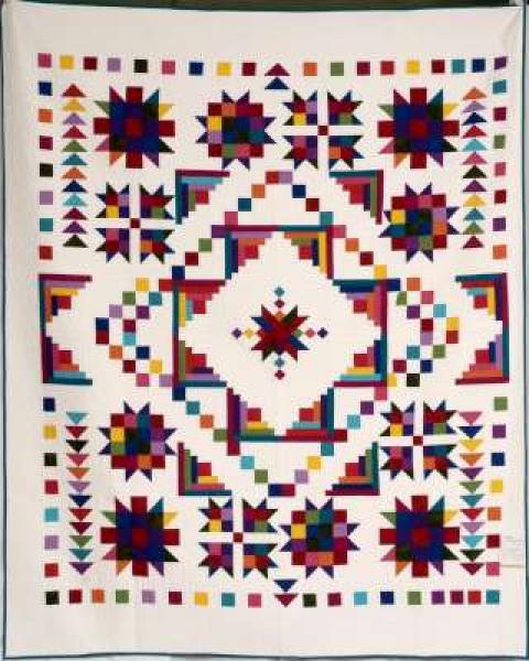 Catalogue Number: 139Sale Year: 2011Item Type: Bed QuiltColours: whitemultiDonor(s): Wendy Chandler, WaterlooQuilter(s): Judy Woodworth, Machine QuilterMachine Quilted: yesDimensions: 90 x 94Description: Pieced