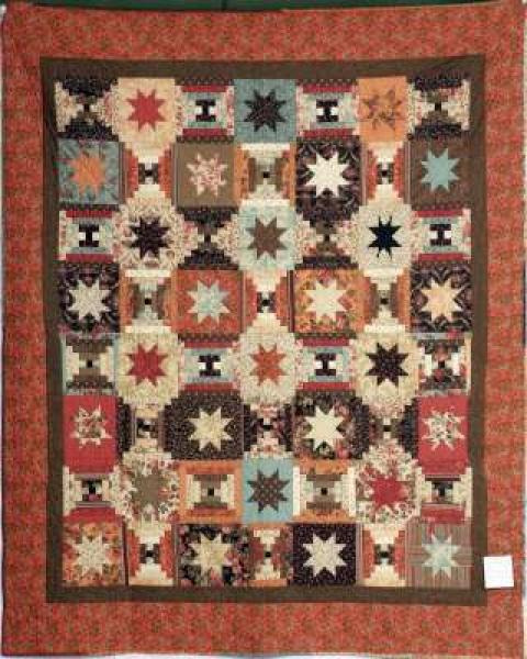 Catalogue Number: 157Sale Year: 2011Item Type: Bed QuiltColours: orangetanturquoiseDonor(s): Bloomingdale WMCECQuilter(s): Bloomingdale WMCECMachine Quilted: noDimensions: 80 x 89Description: Pieced by Dianne Stevanus