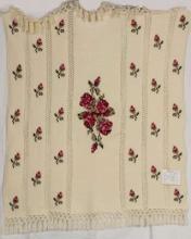 Catalogue Number: 168Sale Year: 2011Item Type: AfghanColours: creamroseDonor(s): Wilma Good, WellesleyQuilter(s): Wilma Good, WellesleyMachine Quilted: noDimensions: 53 x 57Description: Crocheted & Embroidered