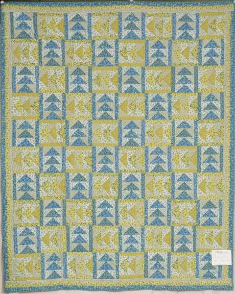 Catalogue Number: 007Sale Year: 2012Item Type: Bed QuiltColours: blueyellowwhiteDonor(s): Lyndsey Janzen, LondonQuilter(s): St. Jacobs WMCECMachine Quilted: noDimensions: 66 x 81Description: Pieced