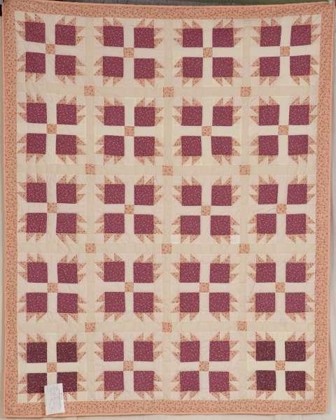 Catalogue Number: 008Sale Year: 2012Item Type: Bed QuiltColours: rosepeachcreamDonor(s): Erb Street WMCECQuilter(s): Erb Street WMCECMachine Quilted: noDimensions: 64 x 78Description: Pieced by Erma Shantz, Wloo