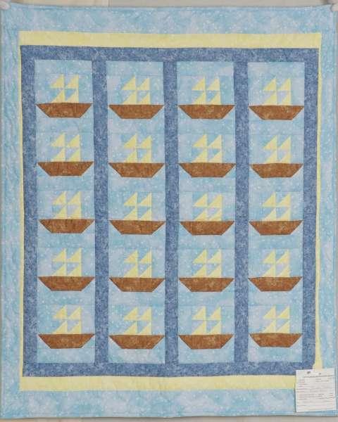 Catalogue Number: 035Sale Year: 2012Item Type: Crib QuiltColours: blueyellowDonor(s): Poole WMCECQuilter(s): Poole WMCECMachine Quilted: noDimensions: 38 x 41Description: Pieced