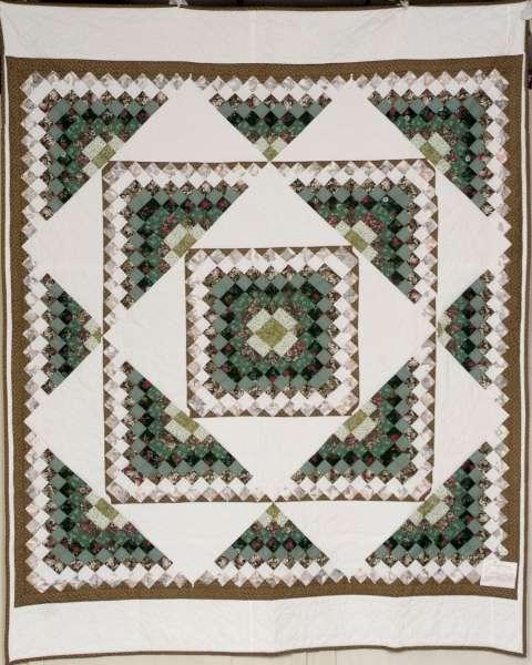 Catalogue Number: 051Sale Year: 2012Item Type: Bed QuiltColours: greenwhitemultiDonor(s): Maple View Markham MennoniteQuilter(s): Maple View Markham MennoniteMachine Quilted: noDimensions: 92 x 102Description: Pieced