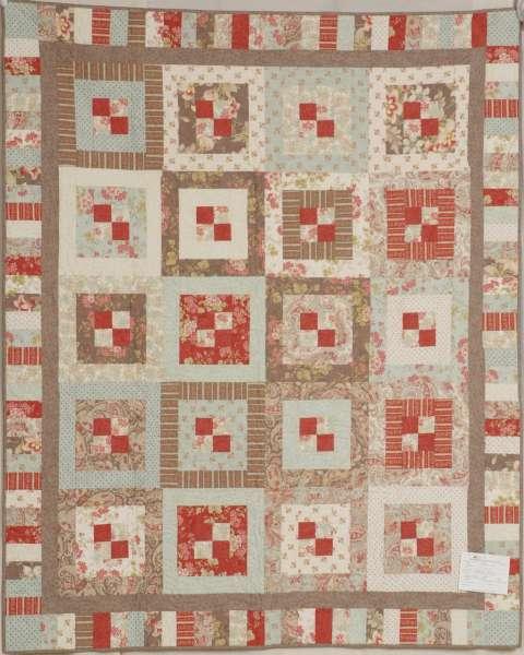 Catalogue Number: 059Sale Year: 2012Item Type: Bed Quilt with sleeveColours: coralgreycreamDonor(s): Quilters Nine Patch, ElmiraQuilter(s): Koren Martin, ElmiraMachine Quilted: yesDimensions: 59 x 71Description: Pieced by Kathy Bauman