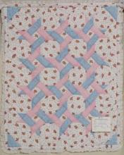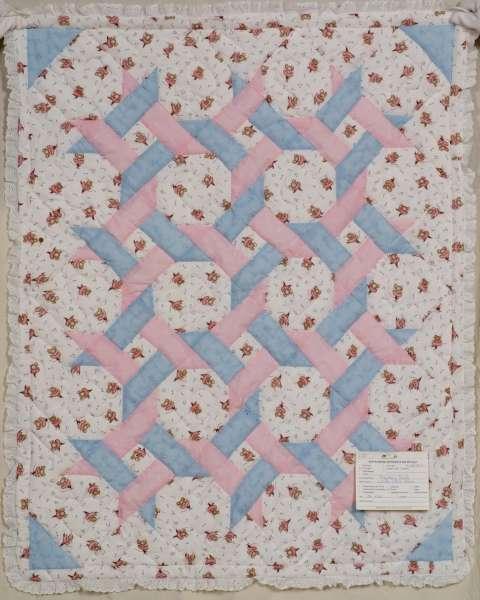 Catalogue Number: 067Sale Year: 2012Item Type: Crib QuiltColours: whitepinkblueDonor(s): Ruth Rosenberg, TavistockQuilter(s): Ruth Rosenberg, TavistockMachine Quilted: noDimensions: 34 x 42Description: Pieced
