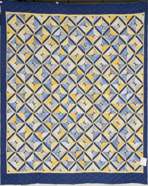 Catalogue Number: 080Sale Year: 2012Item Type: Bed QuiltColours: blueyellowDonor(s): St. Jacobs WMCECQuilter(s): St. Jacobs WMCECMachine Quilted: noDimensions: 95 x 96Description: Pieced by Lorene Martin