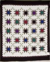 Catalogue Number: 087Sale Year: 2012Item Type: Bed QuiltColours: blackgreenmultiDonor(s): Aylmer Menn. Community StoreQuilter(s): Community Store QuiltersMachine Quilted: noDimensions: 93 x 93Description: Pieced