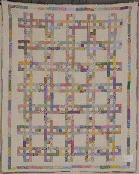 Catalogue Number: 095Sale Year: 2012Item Type: Bed QuiltColours: creammultiDonor(s): Poole WMCECQuilter(s): Poole WMCECMachine Quilted: noDimensions: 67 x 88Description: Pieced