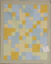 Catalogue Number: 104Sale Year: 2012Item Type: Crib Quilt with sleeveColours: blueyellowgreenDonor(s): Judy Truax & Joyce ZehrQuilter(s): Judy Truax & Joyce ZehrMachine Quilted: yesDimensions: 43 x 49Description: Pieced