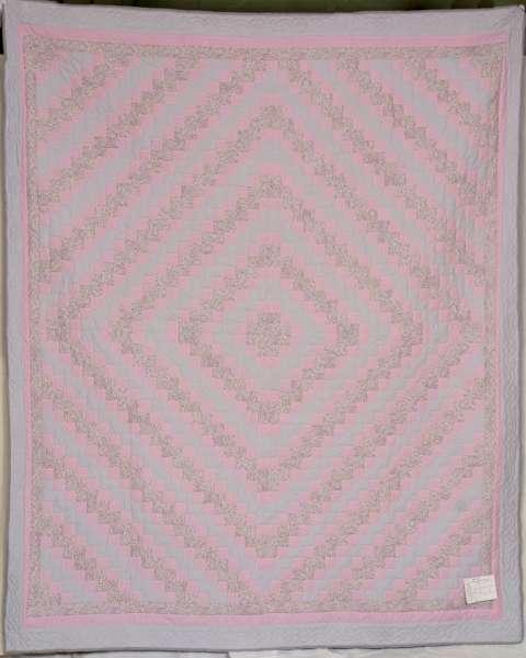 Catalogue Number: 133Sale Year: 2012Item Type: Bed QuiltColours: pinkgrayDonor(s): Goshen Markham MennoniteQuilter(s): Goshen Markham MennoniteMachine Quilted: noDimensions: 96 x 108Description: Pieced
