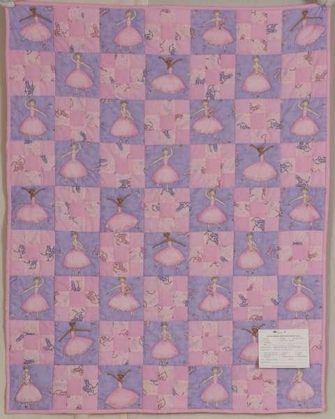 Catalogue Number: 142Sale Year: 2012Item Type: Crib QuiltColours: pinkmauveDonor(s): Betty King, RodneyQuilter(s): Betty King, RodneyMachine Quilted: yesDimensions: 35 x 44Description: Pieced