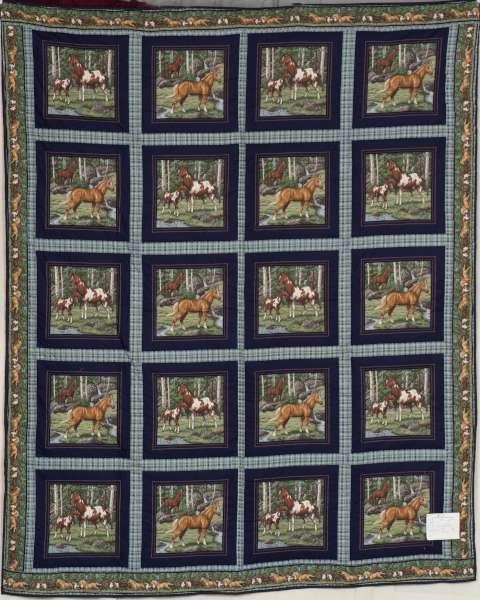Catalogue Number: 177Sale Year: 2012Item Type: Bed QuiltColours: browngreenblueDonor(s): Esther ZehrQuilter(s): Esther ZehrMachine Quilted: noDimensions: 77 x 94Description: Printed Fabric Whole Cloth