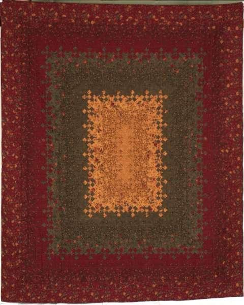 Catalogue Number: 196Sale Year: 2012Item Type: Bed QuiltColours: tangreenburgundyDonor(s): Floradale Mennonite Church WMCECQuilter(s): Floradale Mennonite Church WMCECMachine Quilted: noDimensions: 93 x 109Description: Pieced by Laura Bauman