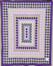 Catalogue Number: 005Sale Year: 2013Item Type: Bed QuiltColours: purplecreammultiDonor(s): Aylmer Mennonite Community StoreQuilter(s): Aylmer Mennonite Community StoreMachine Quilted: noDimensions: 84 x 94Description: Pieced