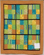 This quilt group of friends dedicated to making a quilt for NHMRS. Each person made a square. The frbrics are numbered 1-9 on the back of the quilt. The object was to place the fabrics so that each row and column equals 9 with each fabric in each block