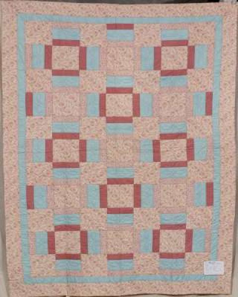 Catalogue Number: 045Sale Year: 2013Item Type: Bed QuiltColours: pinkblueDonor(s): Bloomingdale Mennonite ChurchQuilter(s): Bloomingdale Mennonite ChurchMachine Quilted: noDimensions: 63 x 91Description: Pieced