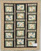 Catalogue Number: 052Sale Year: 2013Item Type: Sofa QuiltColours: blackyellowgreenDonor(s): Margaret ButtQuilter(s): Margaret ButtMachine Quilted: noDimensions: 50 x 72Description: Pieced