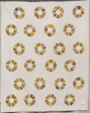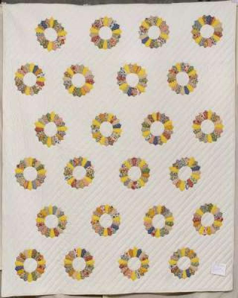 Catalogue Number: 054Sale Year: 2013Item Type: Bed QuiltColours: creamyellowmultiMachine Quilted: noDimensions: 89 x 106Description: Appliqued