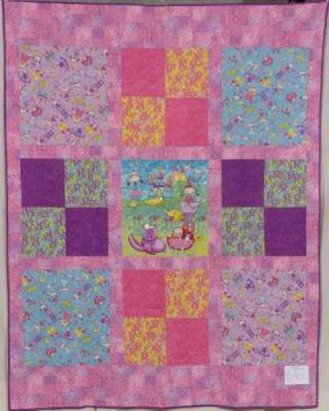 Catalogue Number: 062Sale Year: 2013Item Type: Bed QuiltColours: pinkpurplegreenDonor(s): Quilters Nine PatchQuilter(s): Koren MartinMachine Quilted: yesDimensions: 69 x 89Description: Pieced by Judy Martin