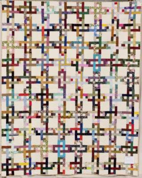 The group who pieced this quilt meet once a month with a "crash our stashes" theme this year. Nancy Page offered this "Chain Link Pattern" in a newspaper advertisement in the 1930's for three cents and a self-addressed, stamped envelope.