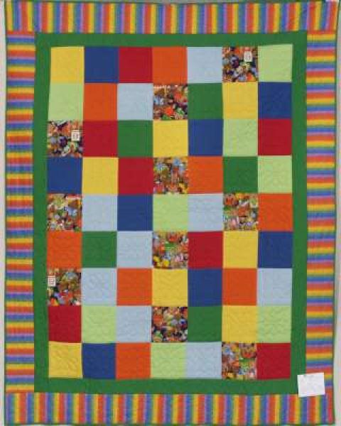 Catalogue Number: 093Sale Year: 2013Item Type: Bed QuiltColours: greenbrightsDonor(s): Linda SnyderQuilter(s): Bloomingdale WMCECMachine Quilted: noDimensions: 68 x 82Description: Pieced
