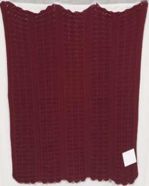 Catalogue Number: 098Sale Year: 2013Item Type: AfghanColours: burgundyDonor(s): Diane CressmanQuilter(s): Diane CressmanMachine Quilted: noDimensions: 52 x 60Description: Knitted