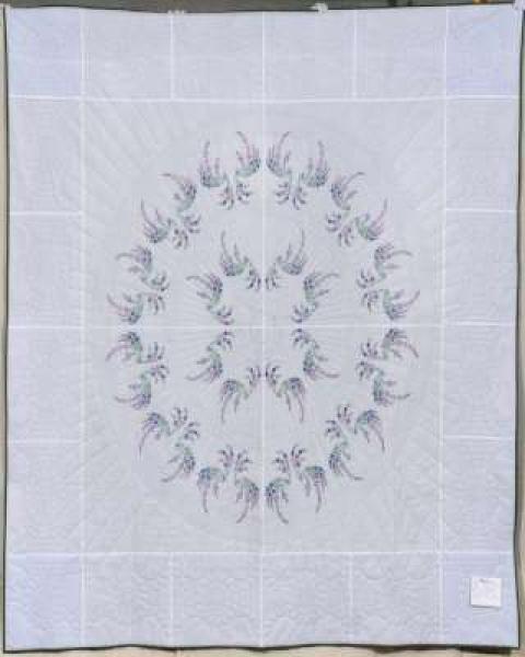 Catalogue Number: 101Sale Year: 2013Item Type: Bed QuiltColours: whitegreenpinkDonor(s): East Zorra Mennonite ChurchQuilter(s): East Zorra Mennonite ChurchMachine Quilted: noDimensions: 95 x 95Description: Embroidered