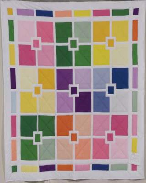 Catalogue Number: 112Sale Year: 2013Item Type: Quilted ComforterColours: whitemultiDonor(s): Aylmer Mennonite Community StoreQuilter(s): Aylmer Mennonite Community StoreMachine Quilted: noDimensions: 67 x 67Description: Pieced