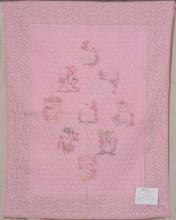 Catalogue Number: 128Sale Year: 2013Item Type: Crib QuiltColours: pinkDonor(s): AnonymousQuilter(s): AnonymousMachine Quilted: noDimensions: 40 x 55Description: Embroidered