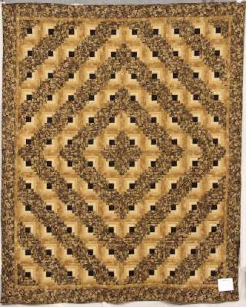 Catalogue Number: 165Sale Year: 2013Item Type: Bed Quilt with sleeveColours: blackgoldtanDonor(s): Floradale Mennonite Church WMCECQuilter(s): Floradale Mennonite Church WMCECMachine Quilted: noDimensions: 91 x 106Description: Pieced by Laura Bauman