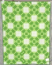 Catalogue Number: 002Sale Year: 2014Item Type: Bed QuiltColours: greenDonor(s): Erb Street WMCECQuilter(s): Erb Street WMCECMachine Quilted: noDimensions: 79 x 105Description: Pieced