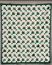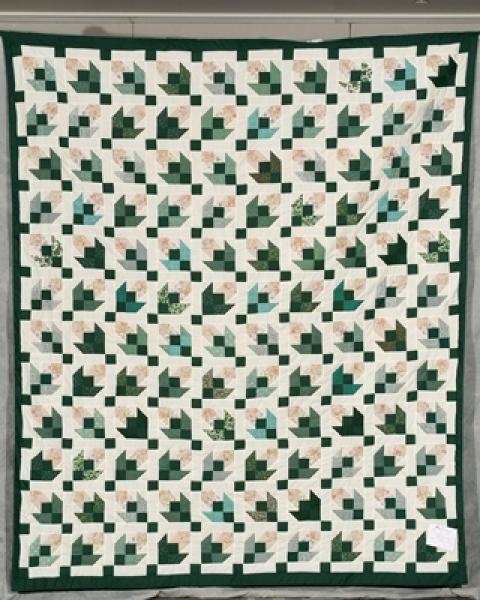 Catalogue Number: 037Sale Year: 2014Item Type: Bed QuiltColours: greencreampeachDonor(s): Erma Burkhart, WallensteinQuilter(s): Erma Burkhart, WallensteinMachine Quilted: noDimensions: 89 x 106Description: Pieced