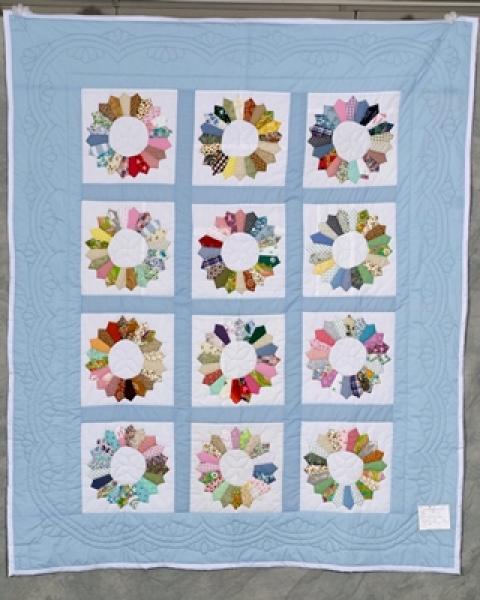 Catalogue Number: 039Sale Year: 2014Item Type: Bed QuiltColours: bluewhitemultiDonor(s): Janet Mayer, WaterfordQuilter(s): Waterford United Church WomenMachine Quilted: noDimensions: 81 x 97Description: Appliqued & pieced