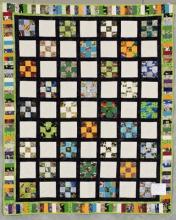 In 2006, months after our first grand-daughter was born, my husband and I were visiting Australia and New Zealand, and I was on the lookout for fabrics from these countries to make an "I Spy" quilt. For this pattern, the search for fabrics is endless since each block only takes a small amount of fabric, but fabric cannot be repeated twice. And so, the search continued after I returned home. This "I spy Nine Patch" quilt uses fabrics left over from the project, as well as some of the unused "piano key" border blocks.